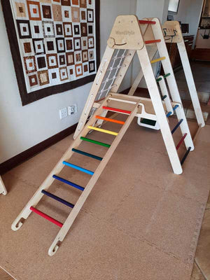 The Pikler Triangle Climbing frames she used have been recommended by health professionals around the world to promote and encourage child development through open and independent play.